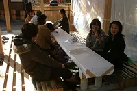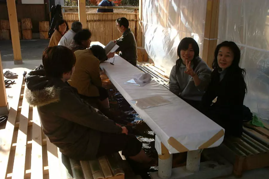 ハーブを利用した「元丈の足湯」が元丈の館に併設されました。浴槽の底に敷き詰められた小石をふむことで、足ツボがマッサージされ健康増進。そばにあるインターホンでドリンクを注文すれば、足浴をしながらのんびりティータイムが楽しめます。