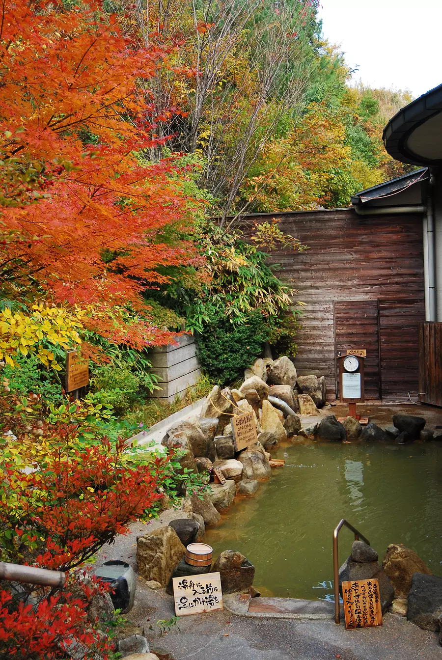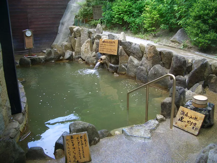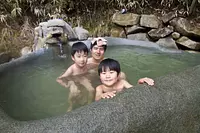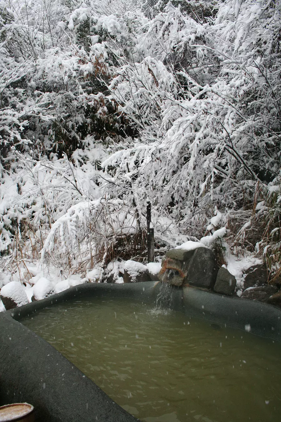 源泉100%の野天風呂が2つあり、38度のぬるめの湯と42度の熱めの湯があります。ぬるめの湯はじっくりとゆったり湯に浸かることができ、常連さんにも大人気!その他、地下水にモクモクの米ぬかを入れたお肌に嬉しい美人の湯、源泉と地下水をブレンドした内湯もございます。表には源泉100%の足湯もあり、こちらは無料で楽しんでいただけます。