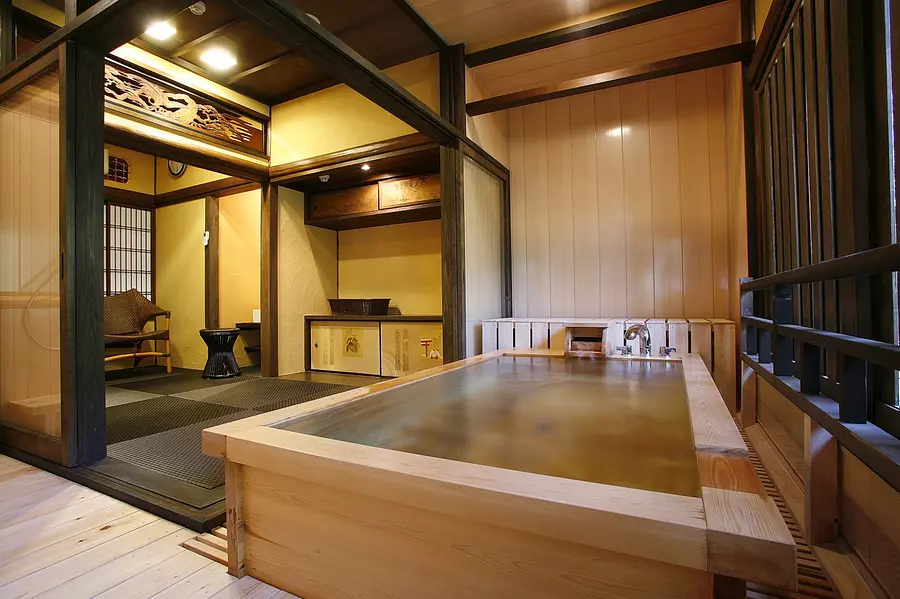 また、庭園にある昭和初期の離れの客間を改装した貸切風呂(6タイプ)はレトロクラシカルな雰囲気でみなさまに好評をいただいております。夕食は部屋食の為、お子様連れやカップルに好評頂いています。宿の場所も、湯の山温泉の中心部にあり、散策などに大変便利です。ぜひお越し下さいませ。