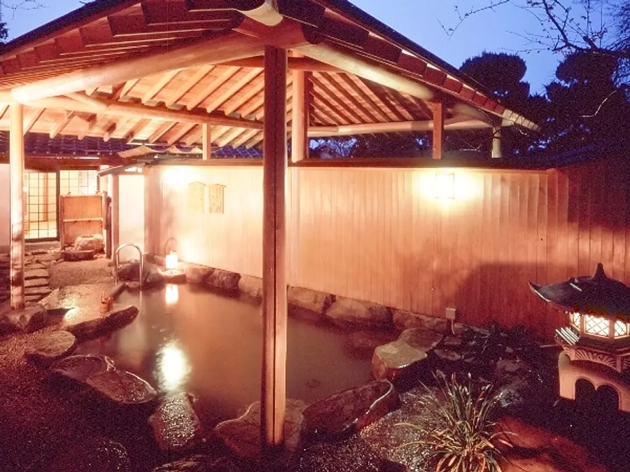 扇野温泉”初蕾の湯”では、水琴窟の音に耳をすませてみてください。ユニバーサルルーム、露天風呂付客室もあります。