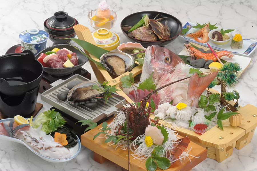 伊勢えび、あわびといった三重を代表する食材を使った豪快海幸会席が自慢。