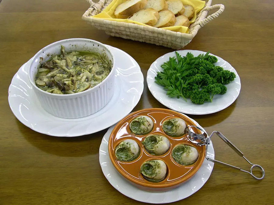 マッシュルーム・エリンギ・まいたけ・椎茸などのきのこ類をたっぷり使ったエスカルゴのココット焼きを食べて、牧場では、赤ちゃんエスカルゴに触れてみよう!