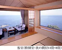 宿からの眺めは絶景で、全館どこからでも、伊勢湾の大海原をご一望いただけます。窓を開ければ波の音が聴こえ、季節により眼下の漁場では海女さんの潜る姿がご覧いただけます。