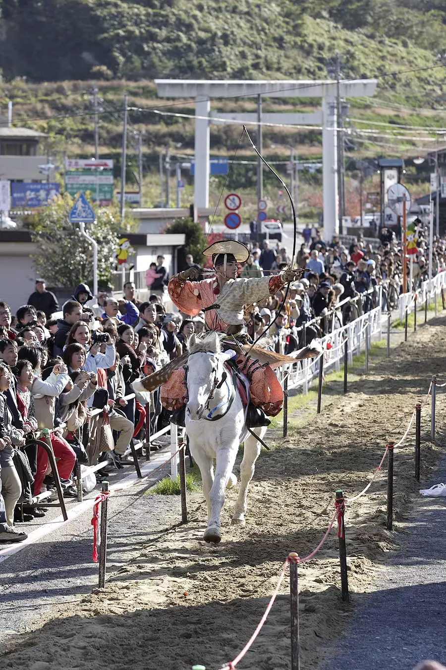 5月4日・5日の上げ馬神事は少年騎手が人馬一体となり上げ坂を駆け上がる勇壮な神事。三重県の無形民俗文化財にも指定されている天下の奇祭です。