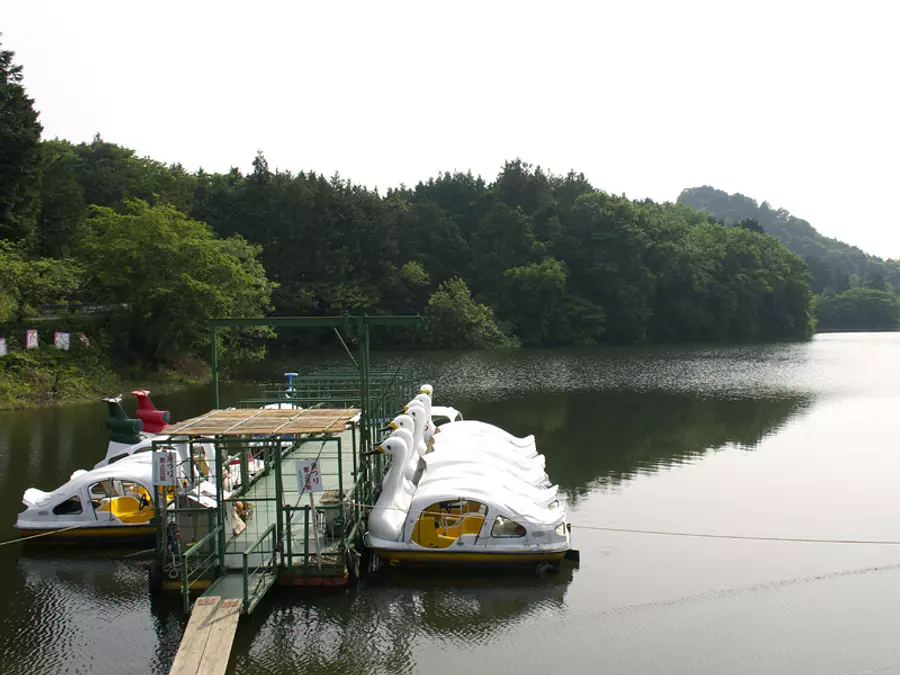 江戸時代に築造され、秋の紅葉と春の桜がよい。県下第一の貯水量。