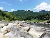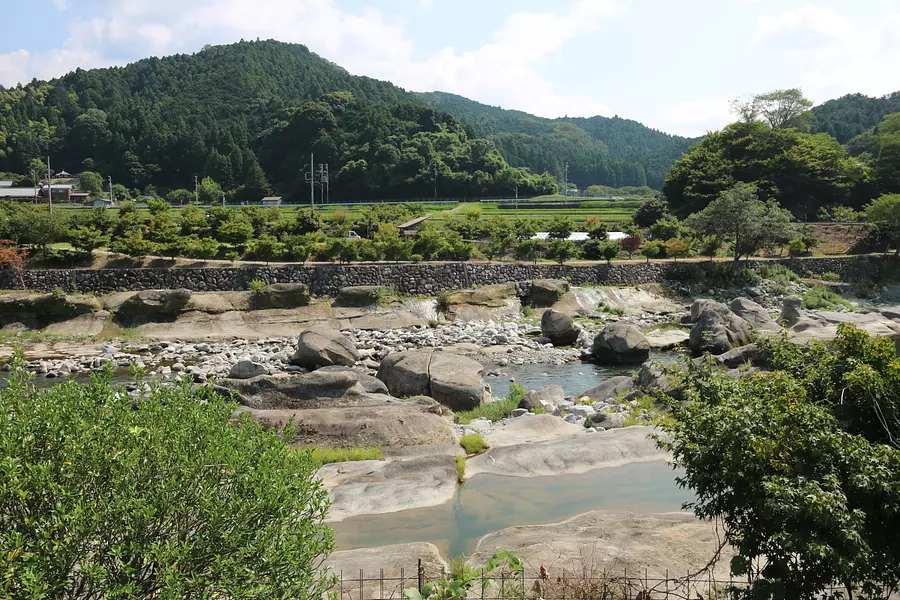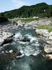下流から瀬戸ヶ瀬(瀬戸ヶ渕)、こぶ湯、箒ヶ瀬、長瀞、鎌ヶ渕、岩舟、猿ヶ瀬と奇勝が続く、JR家城駅から68km周遊コース。