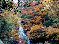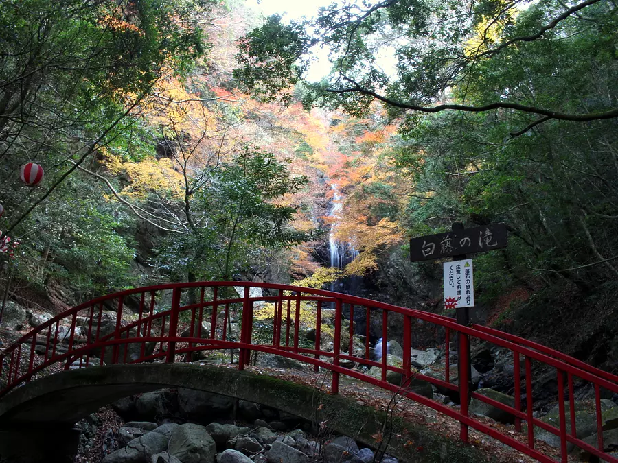 滝川上流にあり、藤の花と紅葉の時期が特に美しい。