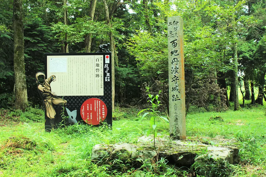 戦国期の伊賀流忍者の上忍・百地丹波守(ももちたんばのかみ)多くの下忍と共に住んでいた砦跡。建物は伊賀乱の戦火で焼失している。
