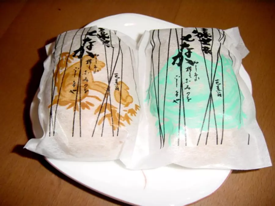 村内で詠まれた芭蕉の句‘初しぐれ猿も小蓑をほしげ也’にちなんだ最中。つぶあん、白あん(レ~ズン)の2種類。