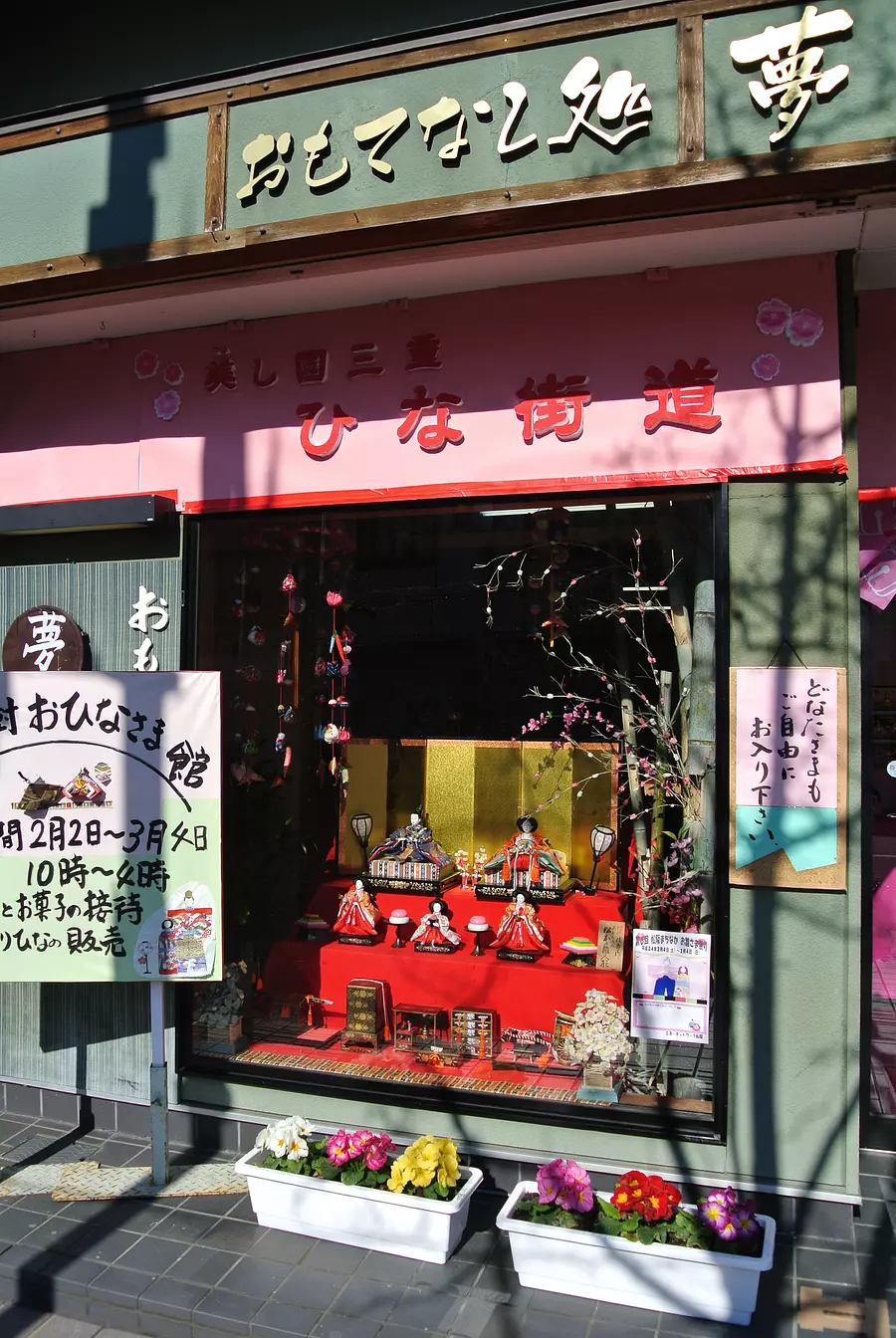 お茶の無料サービス、まちなか案内、観光で歩き疲れたときなど休憩所。お雛様の時期には、手作りのお雛様が飾られています。