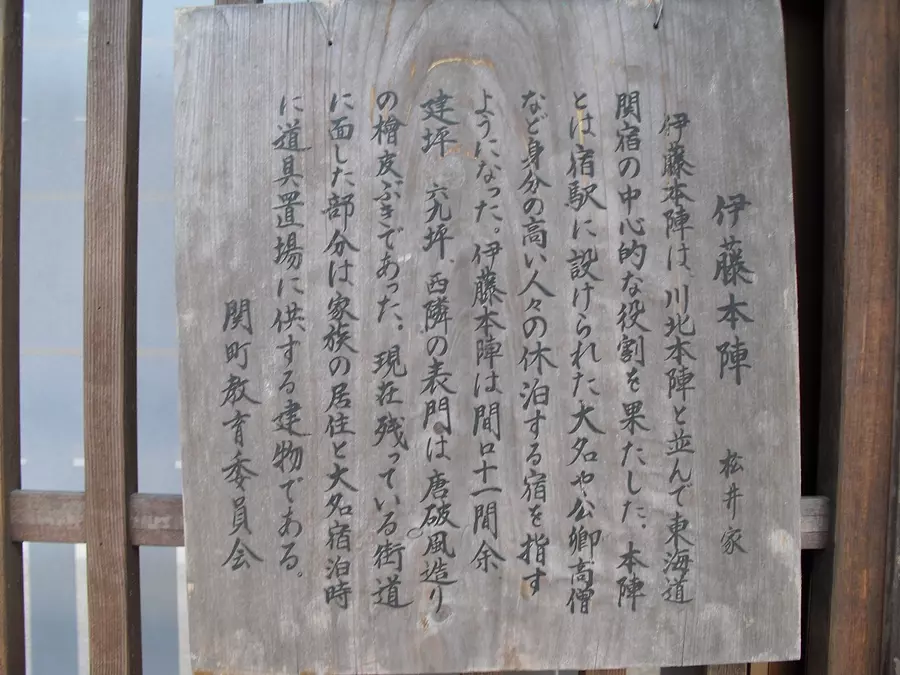 関宿には川北本陣、伊藤本陣の二軒の本陣があった。本陣は参勤交代の大名や、公家、公用の幕臣などが利用した格式の高い宿泊施設であり、両方とも東海道関宿の本陣として栄えた。