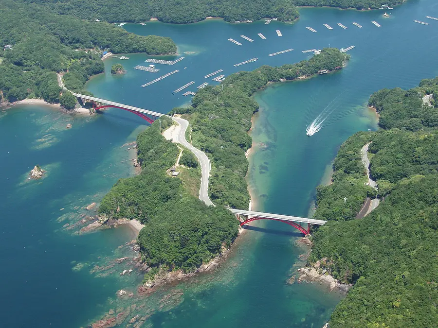 トンボロ(陸地とそれに近い島とをつなぐ砂洲のこと)でつながった島の、隣の島にある展望台です。南島大橋と阿曽浦大橋で陸地とつながっていて、橋と橋の間に位置していて、夕暮れ時にはとても美しい夕日を見ることができます。