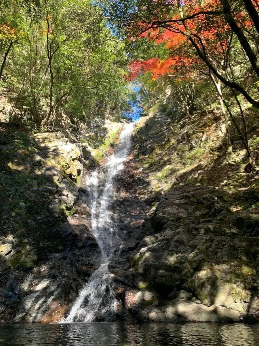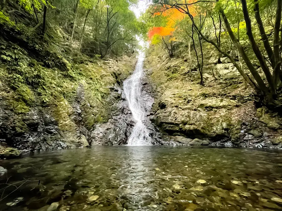 秋になると山々が色づき、紅葉と滝を楽しめます。