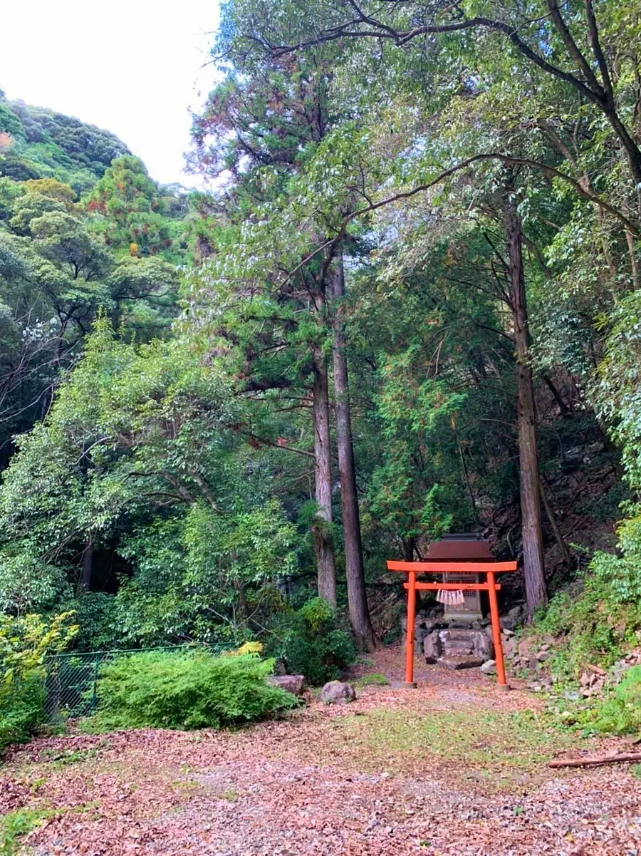乗用車で近くまで行くことができ、車を降りて1分ほど歩くと赤い鳥居が見えてきます。