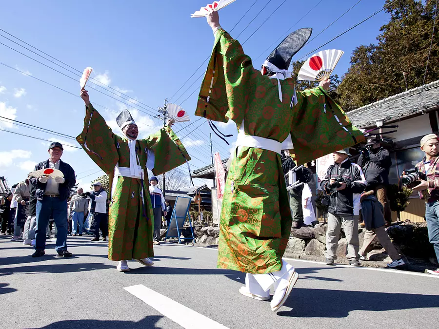 毎年2月の19日に近い日曜日に開催されるごみかけ祭りは、五穀豊穣を願って、町内を「まだらーく万歳」と唱和しながら練り歩く「万歳楽」、境内では今年の作況を占う「弓射行事」また、「苗松神事」などが行われる奇祭。