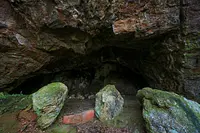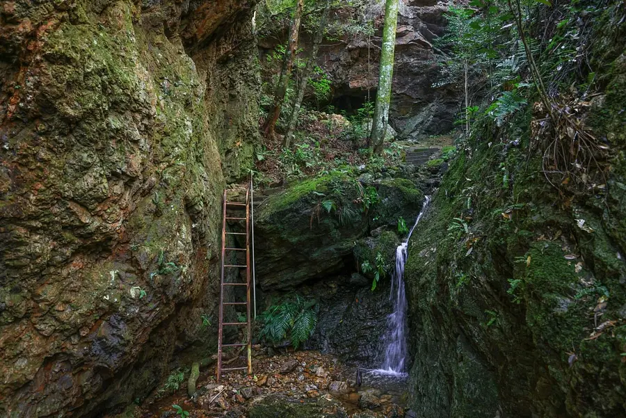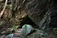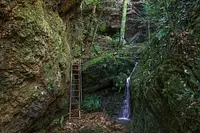 近くには白滝や鬼の像があります。また、この鬼ヶ城はシダ植物が有名で天然記念物にも指定されています。