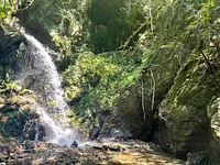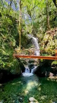 美しい岩肌から飛び出す水流が特徴の滝