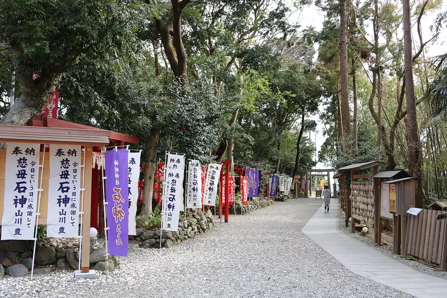 神明神社の境内にある「石神さん」は、海女達の間では古くから「女性の願いなら一つは叶えてくれる」と信仰されており、今では全国から多くの女性の参拝客が訪れます。祈願紙に願い事を1つだけ書き、石神さんの前にある願い箱にそっと入れてお祈りを。