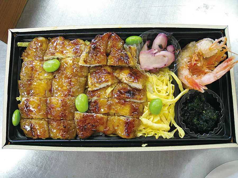 熊野古道を象徴する石畳をイメージした沖ギス(ニギス)のお弁当です。