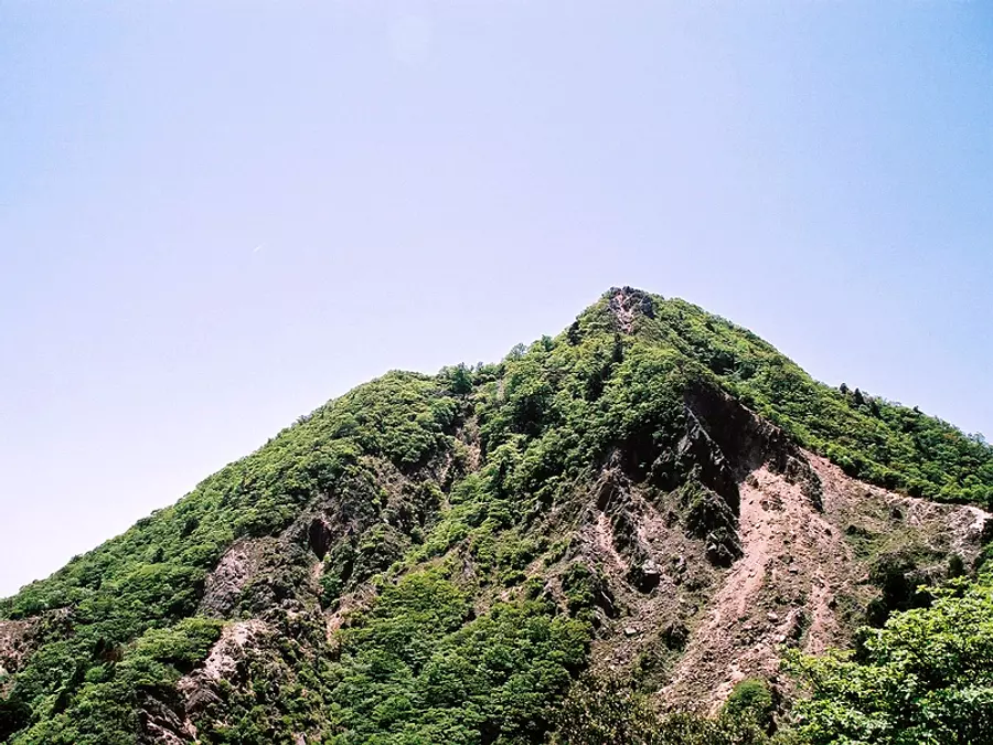 鈴鹿山脈の中央部、御在所山の南に位置する鎌ヶ岳。標高1000m以上のその山頂近くの北東斜面にブナ林があります。