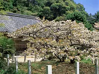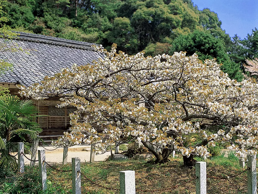 長徳寺の境内、本堂の前庭に植えられた樹高3mの低木の桜の木。