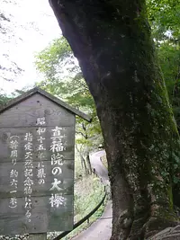「三多気の桜」で知られる桜並木を通り抜けた奥、真福院の山門に登る石段の下に佇む、樹齢1000年以上とも言われているケヤキの木。