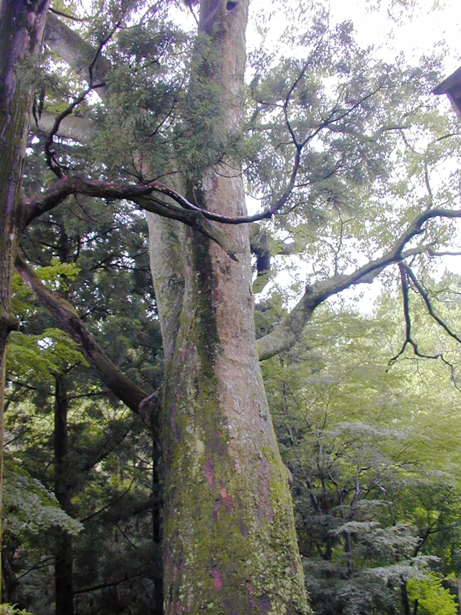 樹高約25m、胸高周囲約6.7mの重厚な主幹は、実寸以上の大きさを感じさせるほどに堂々としています。