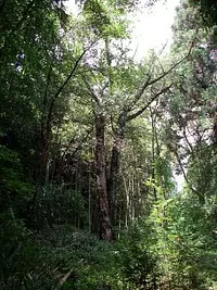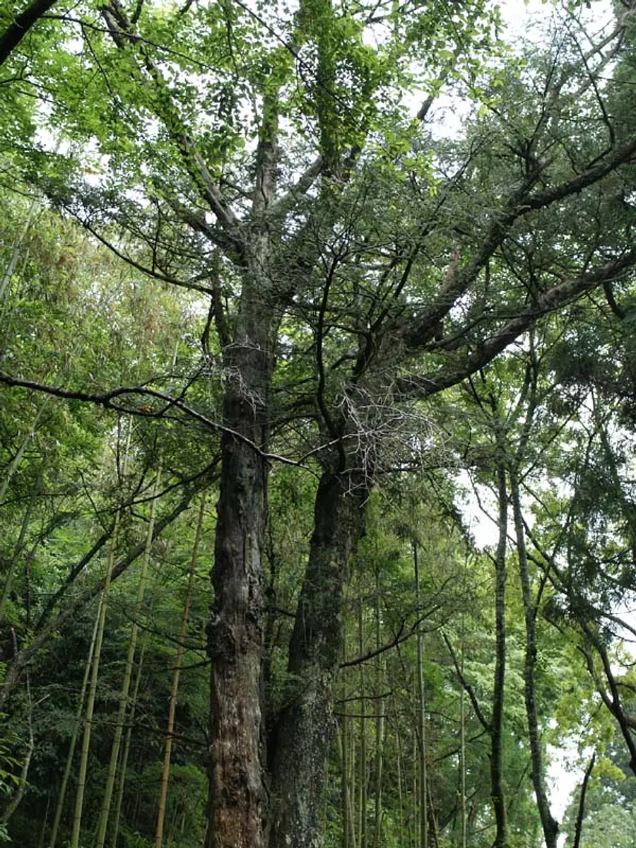 竹ヤブの中に一本あり、樹高約20m、生育は良好で毎年多量の実を付けています。