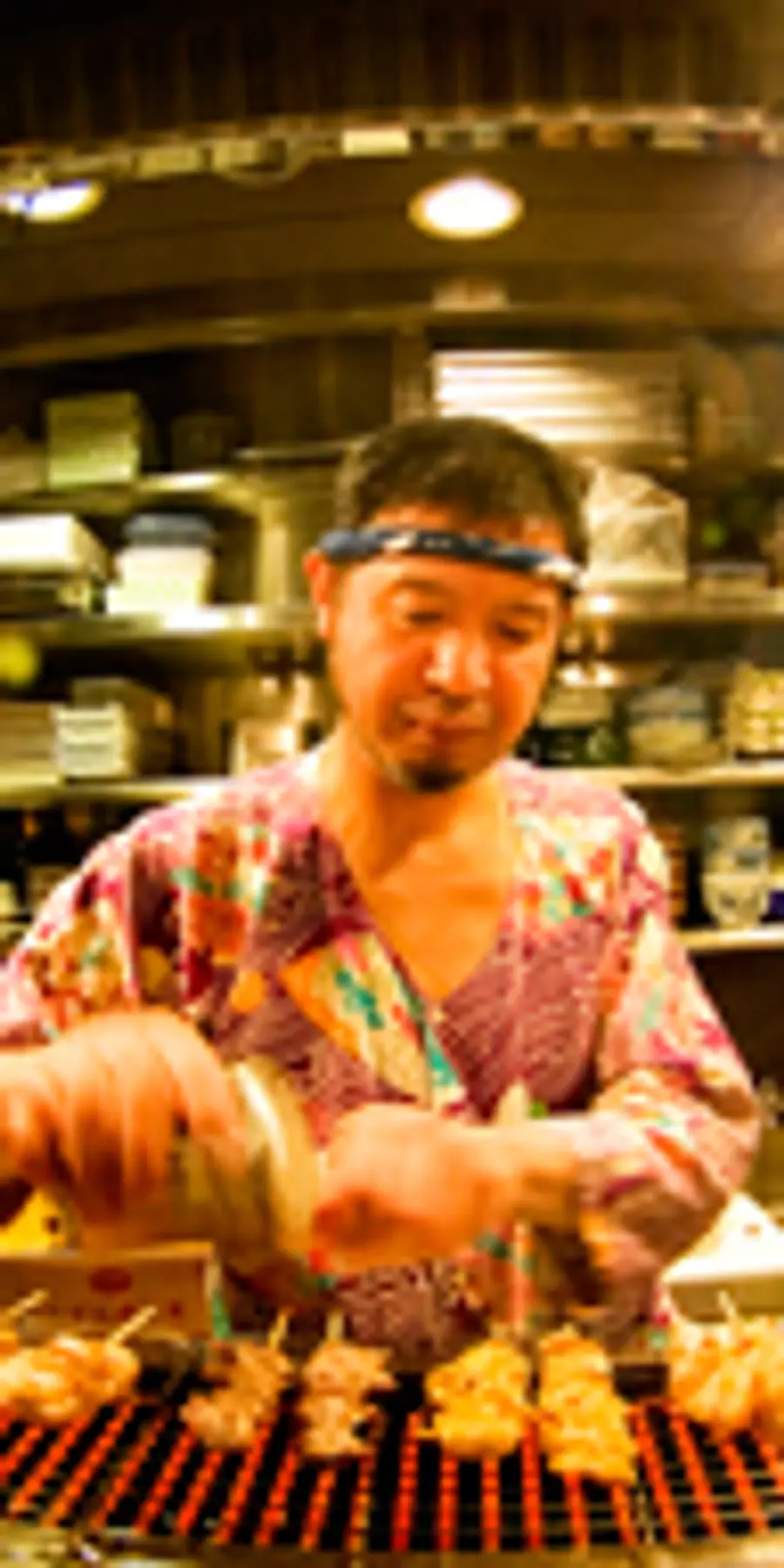 近鉄白子駅西口から、猛ダッシュで1分!焼師が焼く串焼の店!定番の鳥もも串や旬の食材串、そして店独自の勝手串までいろいろあります。全国選りすぐりのお酒といっしょに楽しんでください。