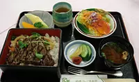ステーキ弁当(サラダ、香の物、赤だし付)も、人気メニューのひとつです。