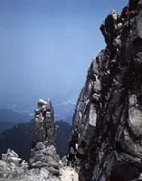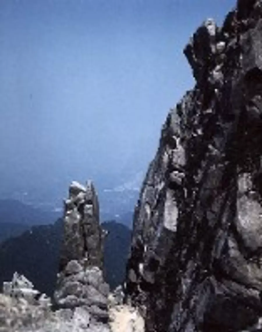 御在所岳裏道コースの途中にある藤内壁。関東の三ツ峠・六甲のロックガーデンと共に日本三大岩場とされている。高さ400m、幅1.5kmの花崗岩の絶壁。