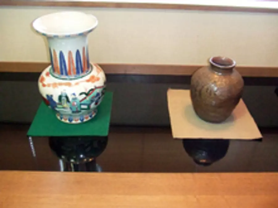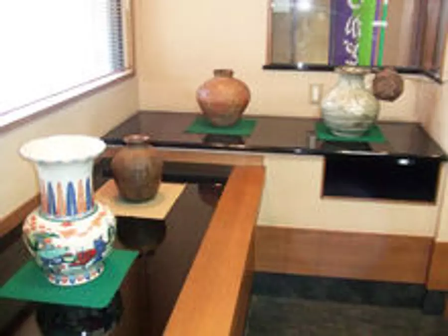 古物、古萬古の展示。主に古萬古を展示しております。お抹茶とお菓子を召し上がりながら、ゆっくりご覧になってください。