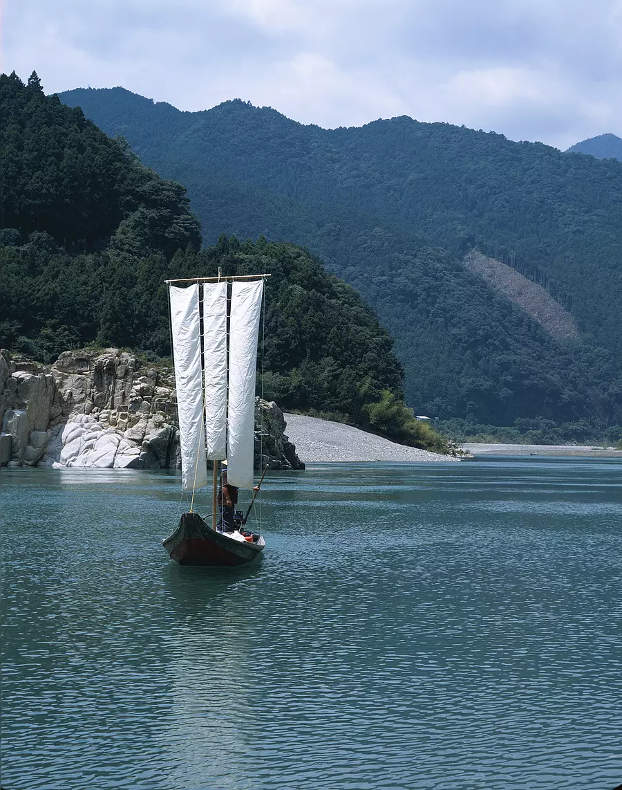 三反帆で熊野川を体験し、比丘尼転びや釣鐘石など、奇怪な自然の造形物を眺めながら熊野川を実感できます。熊野川沿いに、川端(川丈)街道があります。