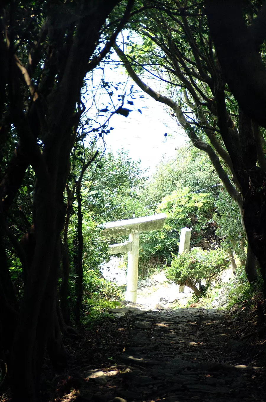 参道入り口の鳥居は海に向かって立っており、かつて船でお参りした名残を伝えます。