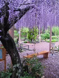 藤棚や足湯も設けられており、春にはメダカが群れをなして泳ぐ姿が見られるなど、大人子どももゆったりとした時間が過ごせます。