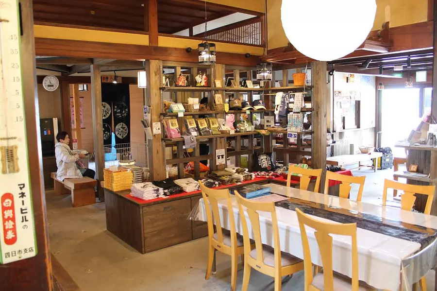 熊野市の旧街道の本町通りに面し、国の登録有形文化財に指定されています。築130年の古商家を改修しています。熊野古道のパンフレット、和室の休憩所、特産品のめはり寿司などの軽食など販売しています。