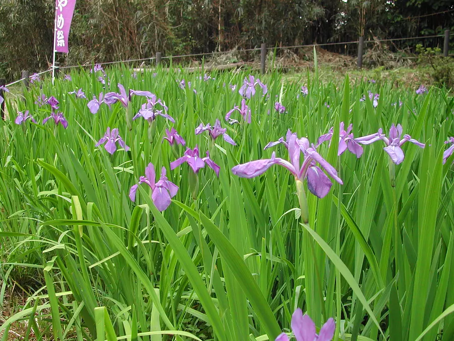 坂手島で中腹にあるアヤメ池で、市の天然記念物であるカキツバタが5月中旬から咲き誇ります。
