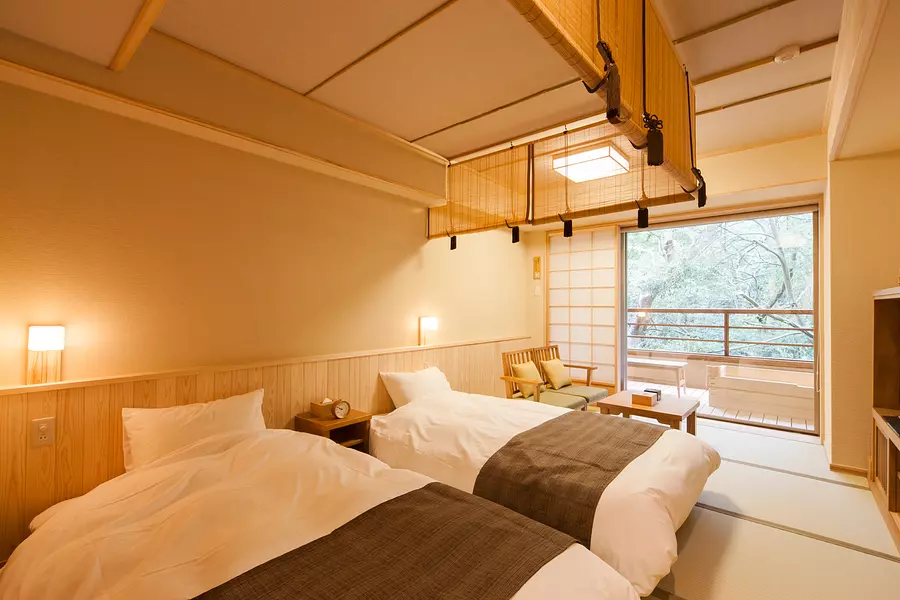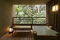 部屋・風呂の前に広がる豊かな森は、そのまま内宮の森へと連なっています。