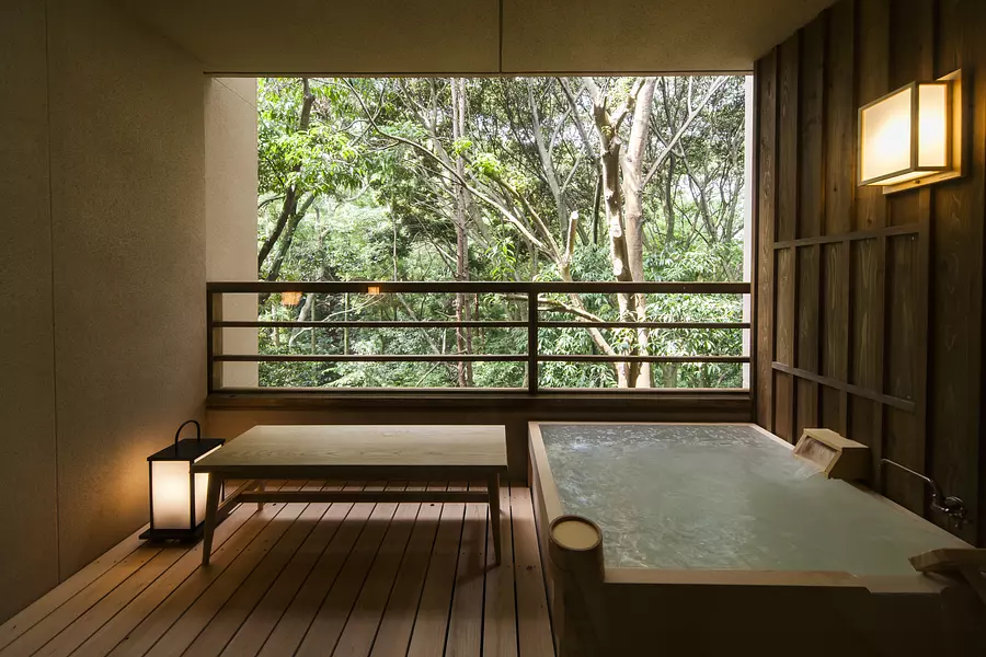 館内には2つの大浴場と趣の異なる3つの貸切露天風呂を楽しめます。