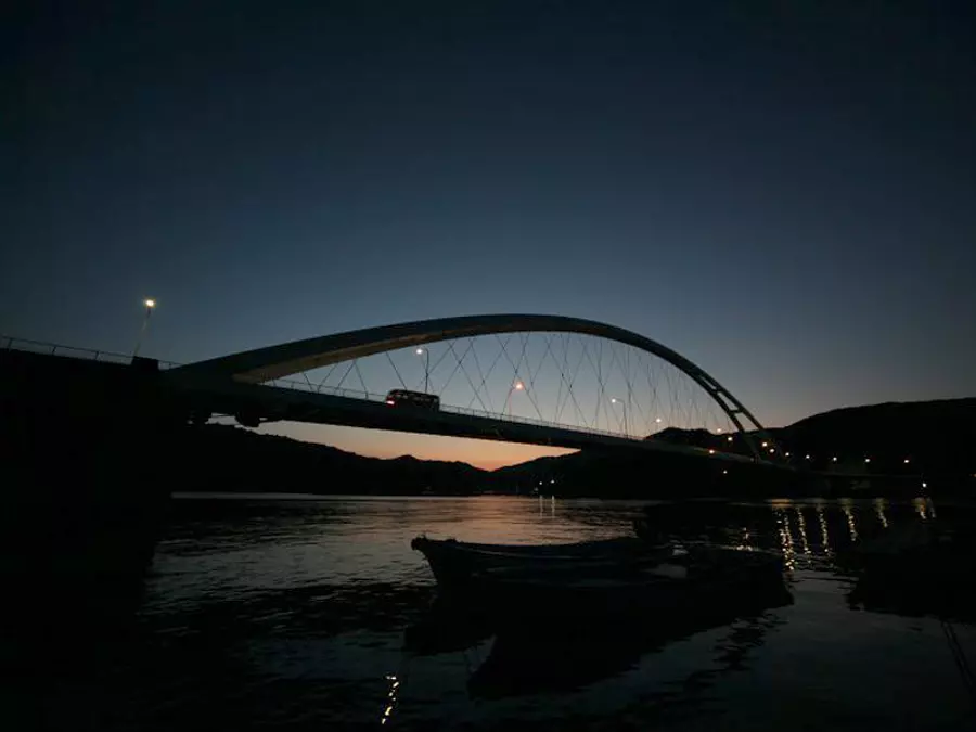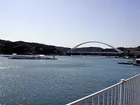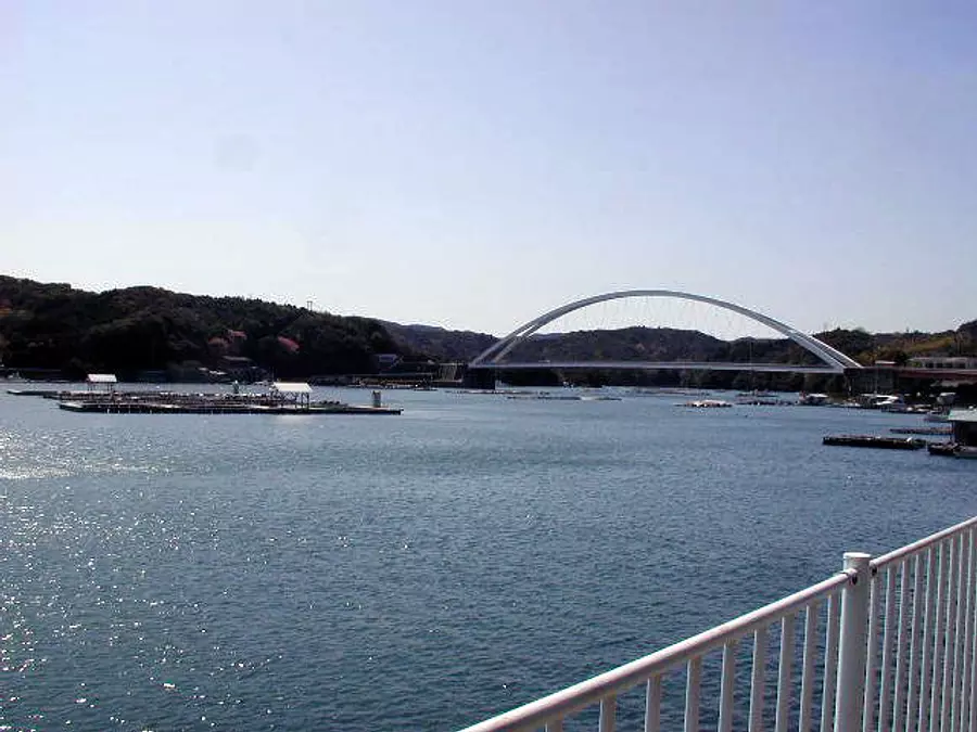 鳥羽の今浦と本浦を結ぶ延長196mのアーチ型の真っ白な橋。