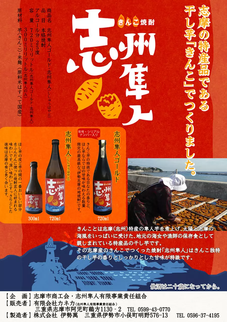 志摩ブランド第1号認定商品「志州隼人」720ml、三重の地酒「おかげさま」「宮の雪」「八兵衛」「義佐衛門」他販売店。