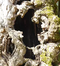 幹内が空洞化しているが、幹回り3.43m、樹高約10m、ムクロジの木では県下最大です。