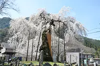 ごつごつした幹をねじり上げたような老木で、幹先がない部分もありますが頑張って花を咲かせ続けています。赤目四十八滝の入口、延寿院にあります。樹齢約300年、樹高約7m、幹回り約3.3m。名張市指定文化財です。