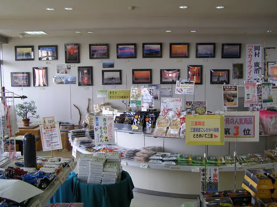 伊勢志摩スカイラインの山頂展望台にあり、売店には伊勢志摩の銘菓や名品が揃い、景色を楽しみながらコーヒーをお楽しみいただけます。