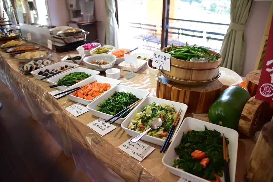 地元の旬の食材を使ったお料理がビュッフェ形式でいただけます