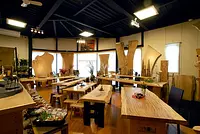 「森林美術館」を運営している「もくいち・マルゴ」では、約20種、2,000枚以上、県下最大級の在庫を誇る天然木材を取り扱っており、無垢材のもつ魅力に触れて頂きたいという想いで、展示場および工場を無料開放しております。
