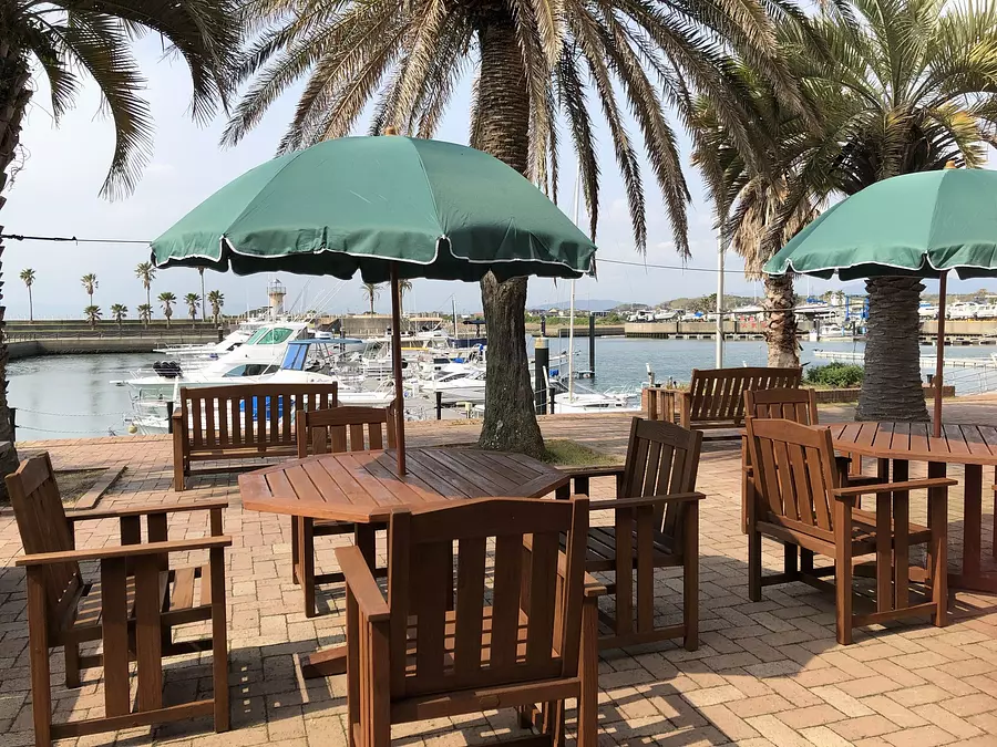 カフェレストラン マーメイドでは海と船が見える癒しの空間でお食事が楽しめます。