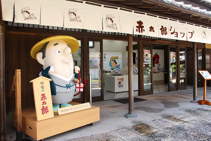 伊勢の五十鈴川野遊びどころに、赤福のキャラクター「赤太郎(あかたろう)」のグッズを販売するお店があります。