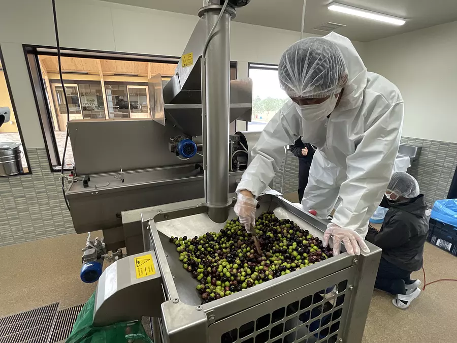 隣接するオリーブ農園には、オリーブ搾油場も併設され、収穫時期(10月下旬~11月上旬)には収穫したオリーブの実を搾油する様子をガラス越しに見学できます。