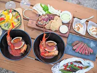 通常のプランですと、地元の海でとれた伊勢海老、アワビなどの海鮮や松阪牛を含む三大珍味付きBBQを屋外にてアウトドア気分でお召し上がりいただきます。